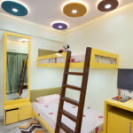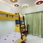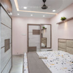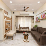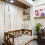 Challenging part came in this compact size 2BHK flat interior when client decided to have a swinger along with his sofa in living room. We build this so confidently and gave heavy SS bracket support on beam which can bear a load of around 100 kg. It was a two seater lavish wooden swinger. We levelled it properly by Bosch level gadgets because such swinger provision needs lot of patience while fixing. The next challenge was a plumbing and this too we handles very professionally because all lines are at little distance from the proposed bathroom of this flats. We faced issues while adding external lines with our internal supply for bathrooms. But due to our professional quality touch we did this so smoothly and without disrupting anything in building.